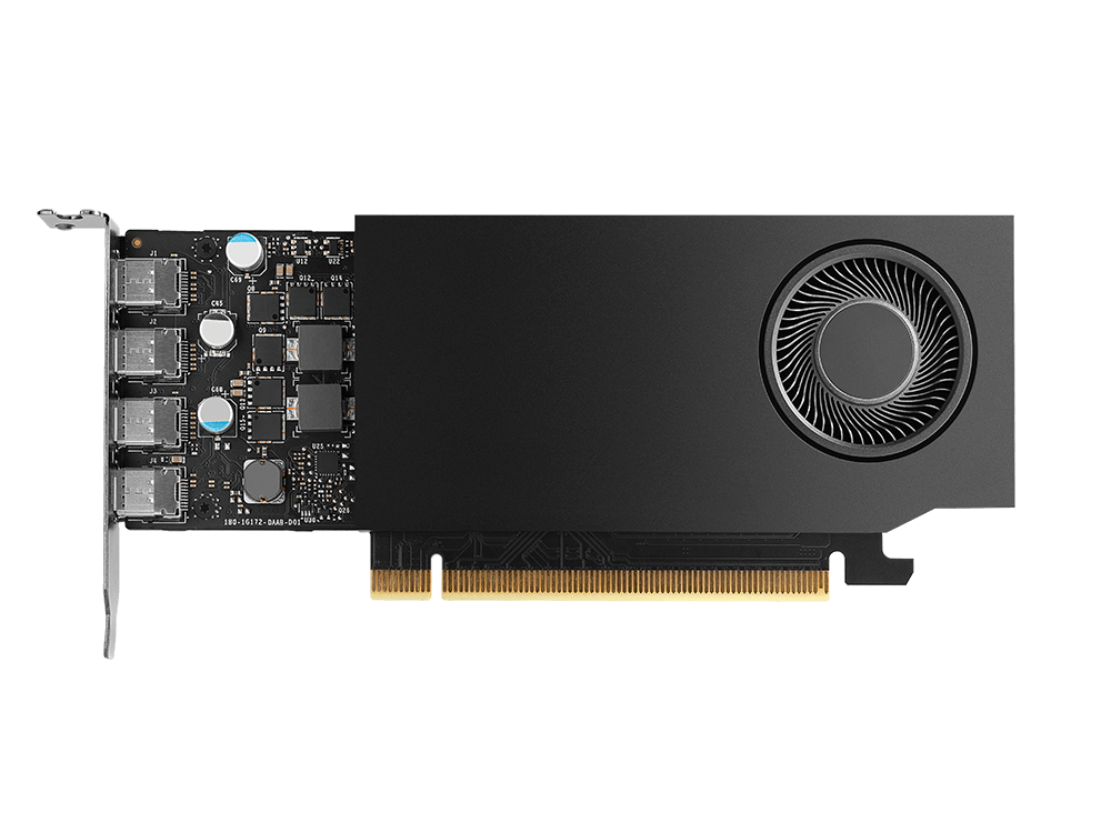 Built on NVIDIA Ampere GPU architecture, the NVIDIA RTX™ A1000 GPU is a powerful, low-profile solution that delivers the performance and capabilities required by demanding professional applications. With 2,304 CUDA® Cores, 18 RT Cores, 72 Tensor Cores, 8GB of GDDR6 memory, and the ability to drive up to four 5K displays, the NVIDIA RTX A1000 is ready to take your work to the next level.