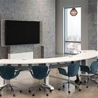 The Forum™ Arc shaped table allows for all in-person participants to directly face the remote participants during videoconferencing calls.