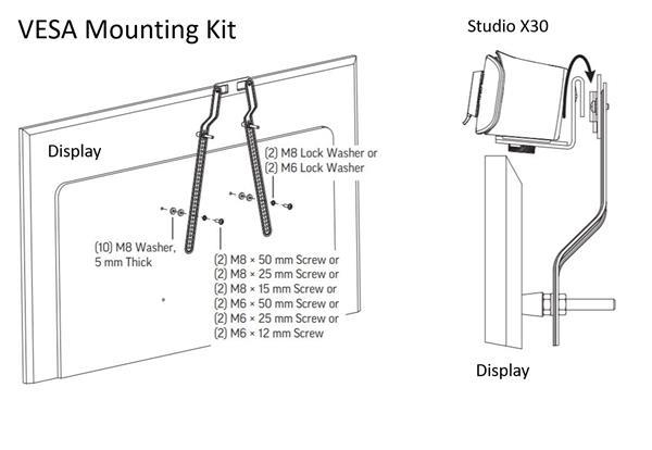 • Vesa Mounting Kit - Mounts the X30 above/below the display with the displays VESA mounting holes