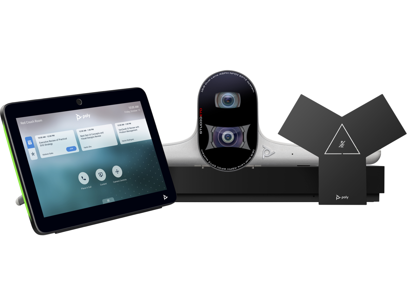The Poly Studio E70 is a first-of-its-kind intelligent camera that super-charges meeting rooms with mind-blowing video quality, state-of-the-art audio features, and next-level analytics. Dual lenses with 20-megapixel 4K sensors are boosted by Poly DirectorAI technology to create a completely unrivaled video experience – perfect for hybrid working environments.