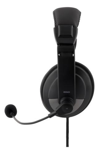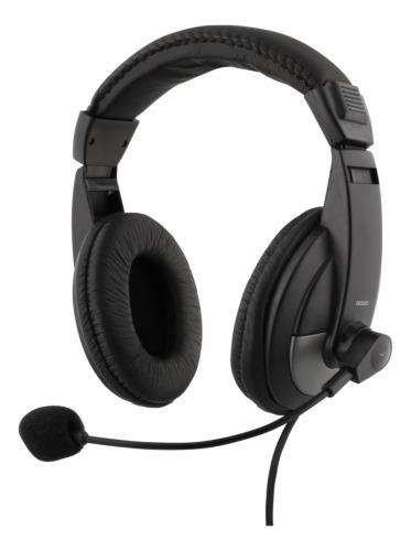 Headset, 40 mm element, 1 x 4-pin 3,5 mm minitele-kontakt, svart. Bekvämt headset med rejäla kåpor. Volymen kan justeras med reglage på kabeln. Mikrofonen kan vridas så att den inte är i vägen när den inte används.