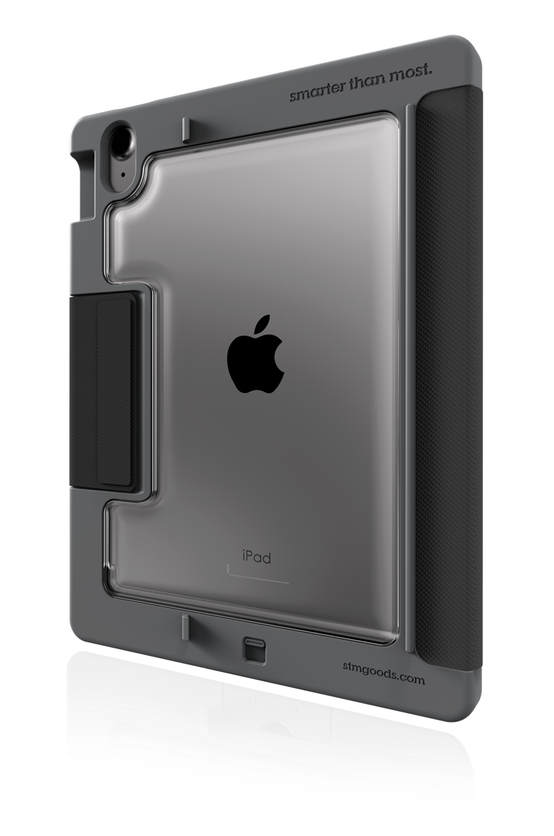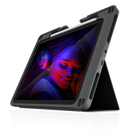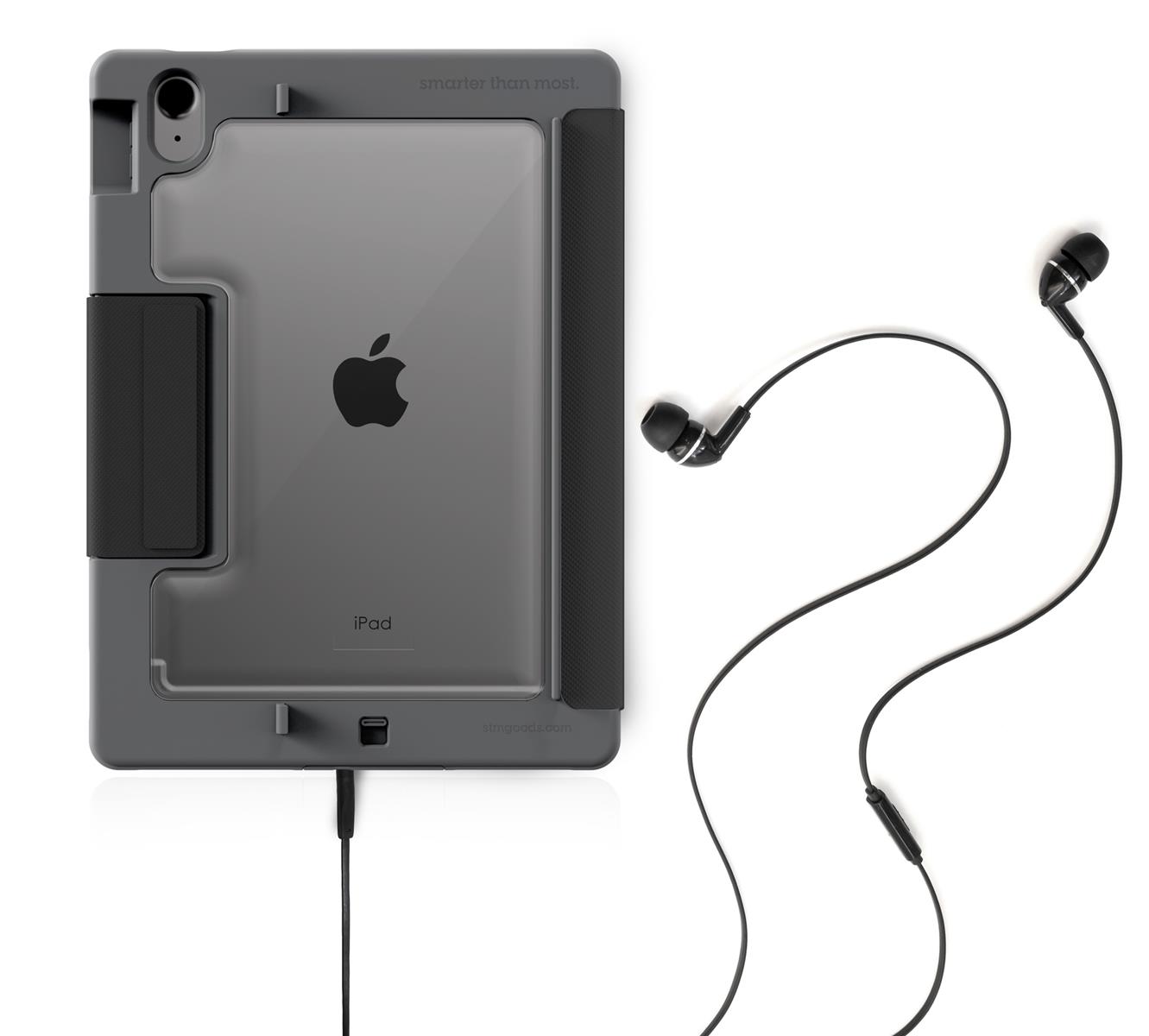 The rugged Dux case for iPad with a built-in aux port. Tough as an ox, smart as a Dux, ready to plug and play. Plug in 3.5mm aux cable headphones to your iPad without needing a dongle. Also comes with built-in USB-C port for charging and DisplayPort. Designed with Apple Pencil 1, Pencil USB-C or Logitech Crayon storage.