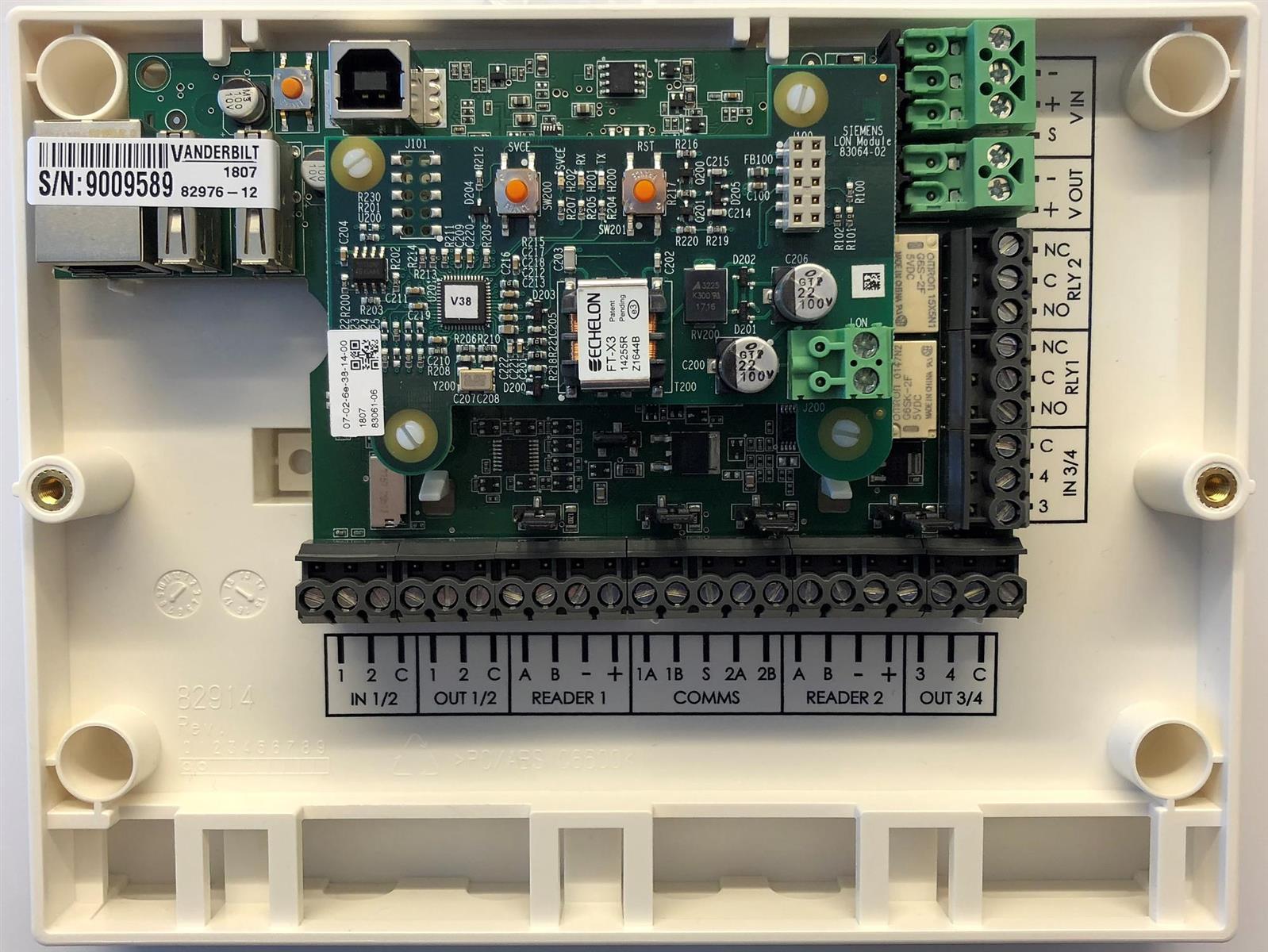 The E100 is a central unit for the Omnis system. It can also act as a combined central and door unit. A total of 79 nodes, including the built-in door unit, can be managed by the E100.