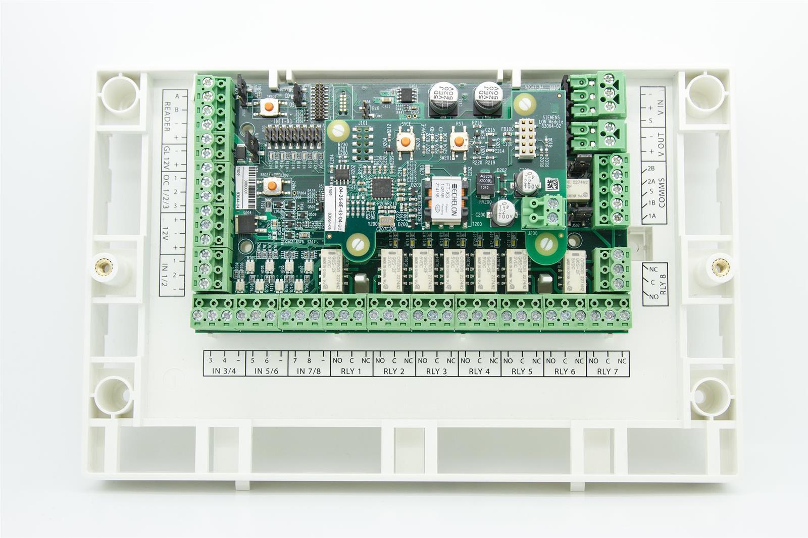 The E200 is used for the installation of alarms and access control. The E200 unit has 8 inputs, 8 outputs and inputs for card readers and keypads. The inputs can be set for a double-balanced alarm loop or a power loop for direct connection of glass break or fire detectors. The outputs can be freely programmed for different control functions. Delivers fused local 12V or supply voltage. The E200 is supported from Omnis version 4.1 SP7 and later. If you want to use all 8 outputs instead of only 4, you need Omnis version 6.2 or later. The E200 supports our popular Mifare VRxxS-MF card readers via the RS485 interface. The E200 also has a clock/data and Wiegand interface.