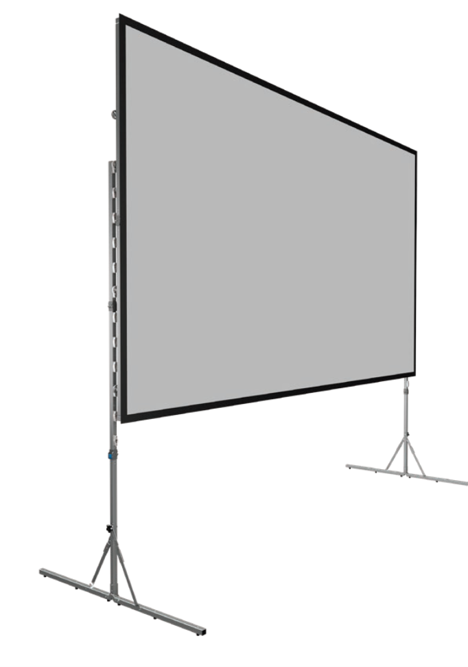 The enhanced Fast-Fold® Deluxe Screen System brings an advanced approach to rental and staging applications for set-up and tear-down to accommodate all skill levels. Its new and efficient portable design features include an intuitive leg-to-frame locking mechanism with no parts to lose. This screen is now available with HD Rental - a foldable and optically enhanced screen surface for high-definition AV experiences, featuring RF (radio frequency) welded binding for improved aesthetics and durability.