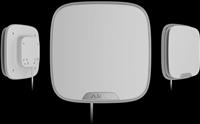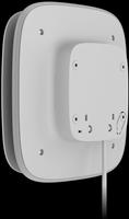 Wired siren for indoor and outdoor use with a clip lock for a branded faceplate.