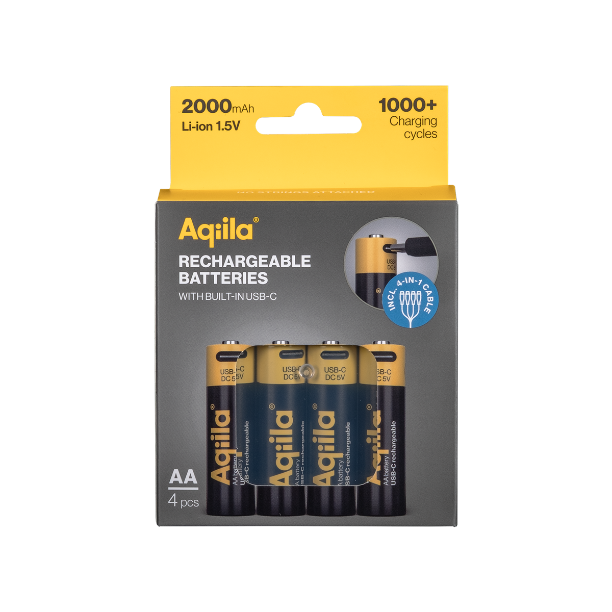 Aqiila Uppladdningsbart USB-C Lithium batteri AA 1,5V 4-pack