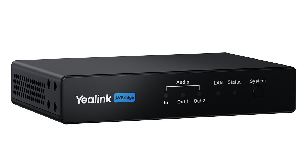 AVBridge is a compact audio box and A/V signal extender, designed for modern meeting spaces to deliver reliable and high-quality audio-visual integration. It includes essential audio processing capabilities and combines 4×4 Dante channels, Phoenix connector analog I/O, and USB extension to bridge cameras, DSPs, or other AV devices. It is ideal for pairing with Yealink CM20/CM50 ceiling microphones to form a standard video conferencing audio solution, while also offering a step-up upgrade from integrated audio paths to enable more professional Pro AV room scenarios.