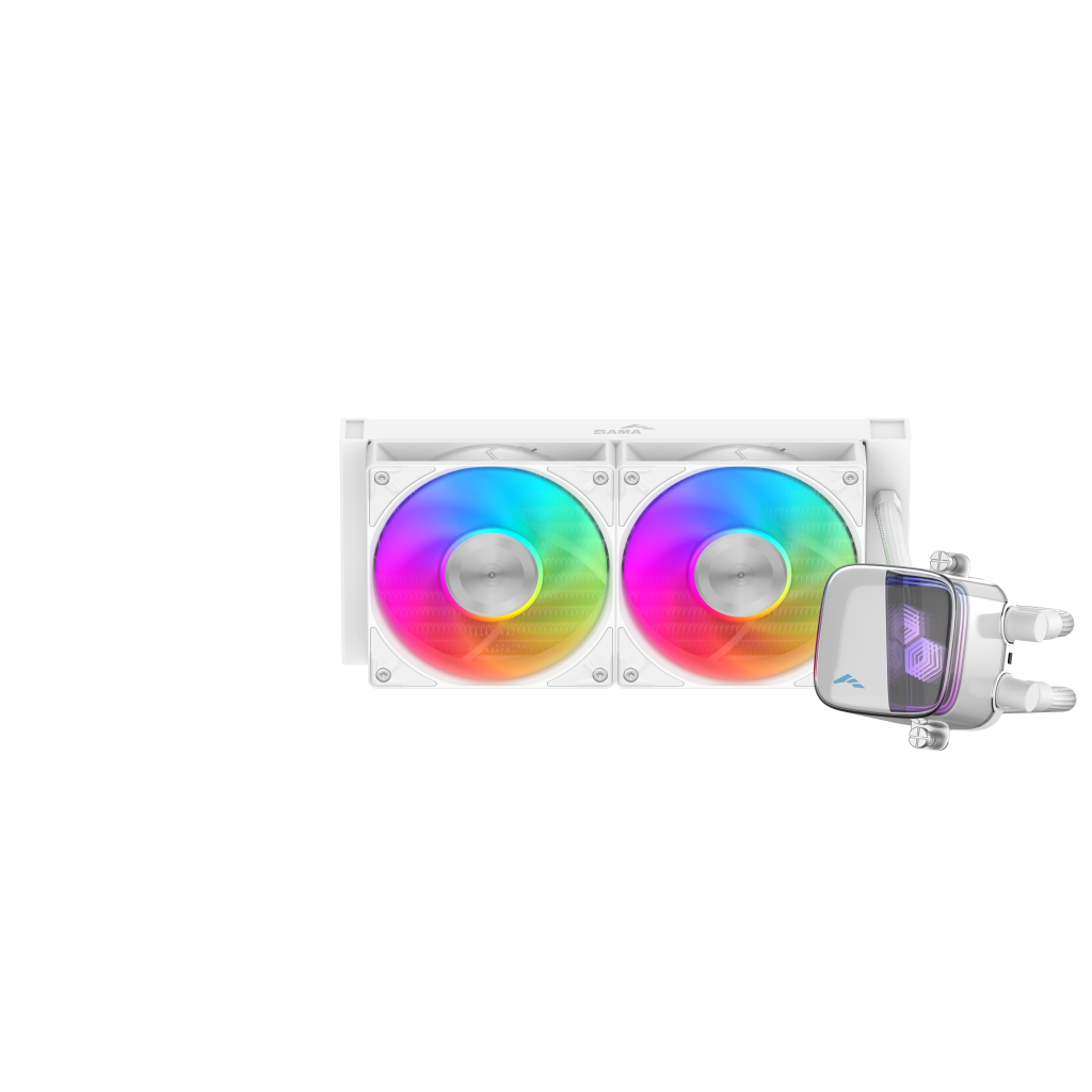 Experience advanced cooling with the SAMA L70 AIO: a high-performance ceramic pump and 28mm-thick fans ensure excellent thermal efficiency, while its acrylic water block with chamfered infinity mirror delivers vivid, multi-layered ARGB lighting for both power and style.