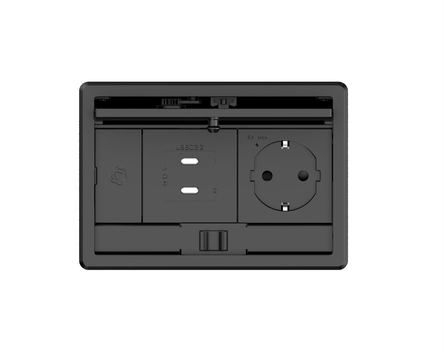 Tabletop connectivity box with a lid that’s easy and reliable to install, maintain and use, with versatile, robust, table−mount solutions designed for today’s meeting room furniture. TBUS components are all installed and maintained from above the table, saving time, effort and hassle. With its mix and match modules, simple slide and lock mechanism and advanced technology, TBUS is extremely flexible, simple to fix and upgrade. With its small, slim design that integrates into table surfaces, Kramer’s TBUS keeps workspaces neat and tidy, without interrupting the table’s look and feel.