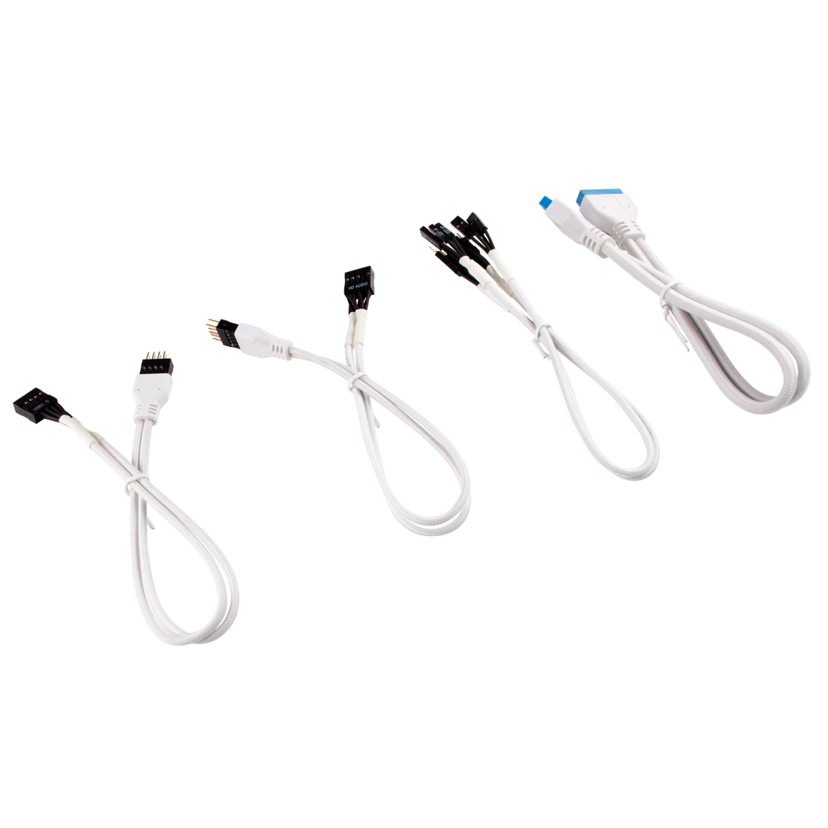 The CORSAIR Premium Individually Sleeved Front Panel Extension Kit completes your PC build in style. Extend and tidy your PC’s front panel connection to your motherboard with individual 30cm extension cables that add the finishing touch.