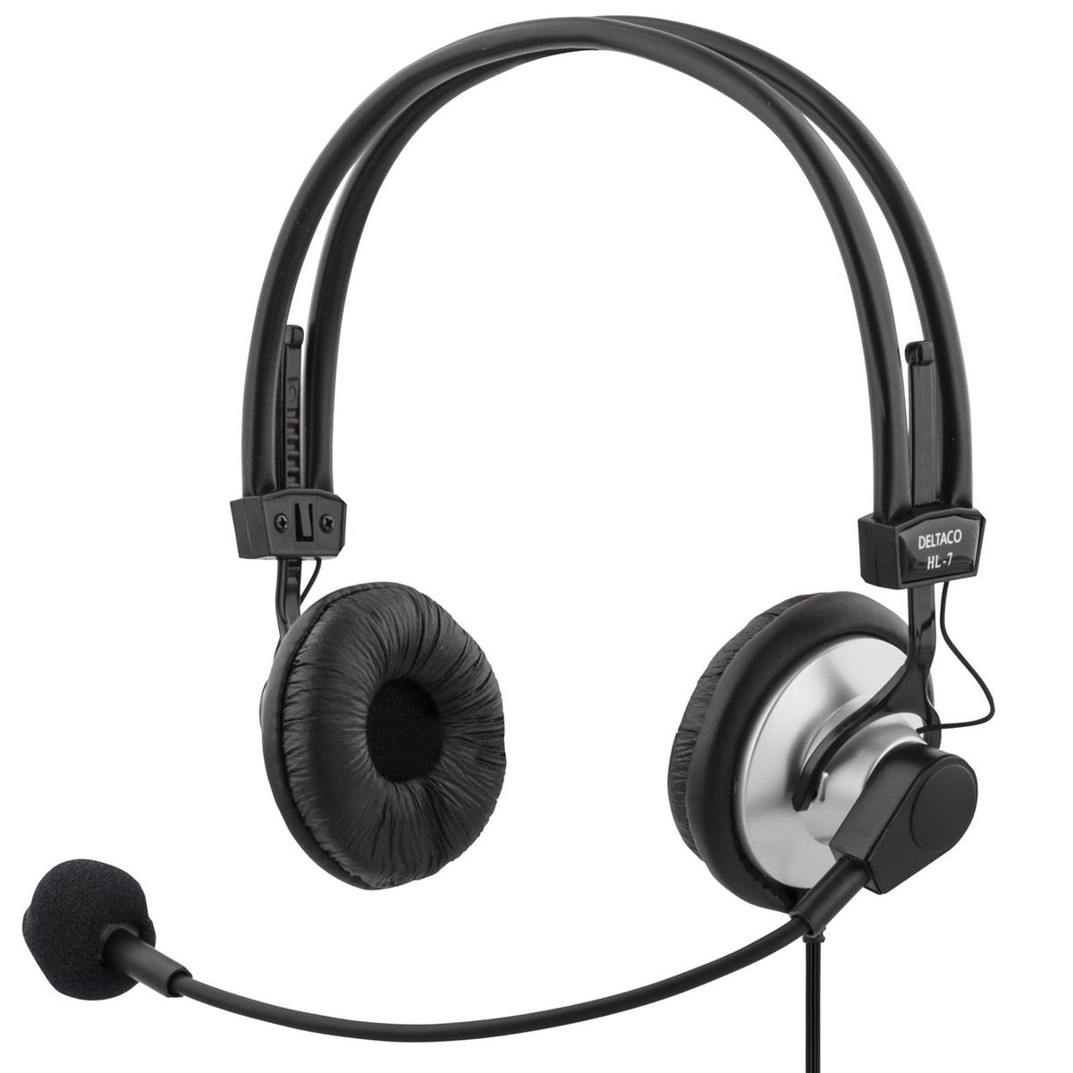 Headset, volymkontroll på kabeln, 2 x 3,5 mm, 2 m kabel, svart/silver