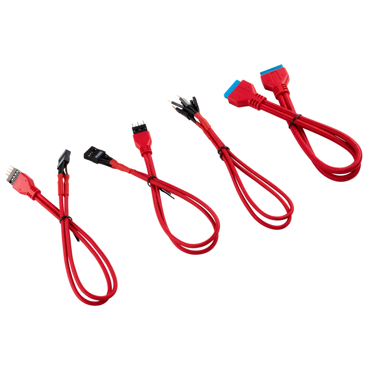 The CORSAIR Premium Individually Sleeved Front Panel Extension Kit completes your PC build in style. Extend and tidy your PC’s front panel connection to your motherboard with individual 30cm extension cables that add the finishing touch.