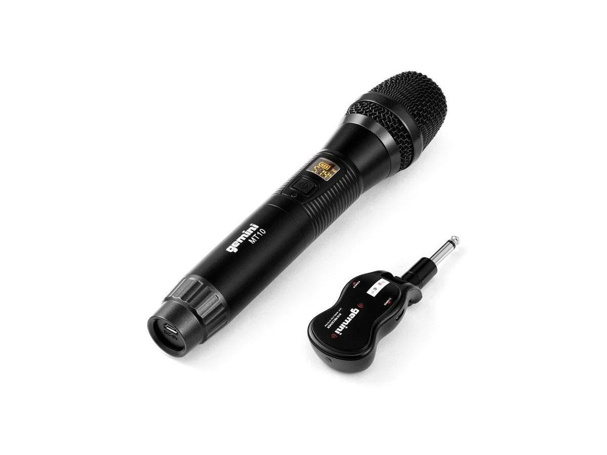 The GMU-M100 is a UHF Wireless System with a dynamic handheld microphone and wireless receiver. This expandable Plug & Play system will meet all your wireless needs with USB rechargeable batteries and a long-distance wireless connection, just plug in and power on and you’re ready to rock. Gemini’s GMU Wireless system is perfect for many applications, including but not limited to Karaoke, Busking, Weddings, Conferences, Streaming, and Podcasting. We’ve put our years of audio industry experience into developing a high-quality wireless system that only Gemini can provide.