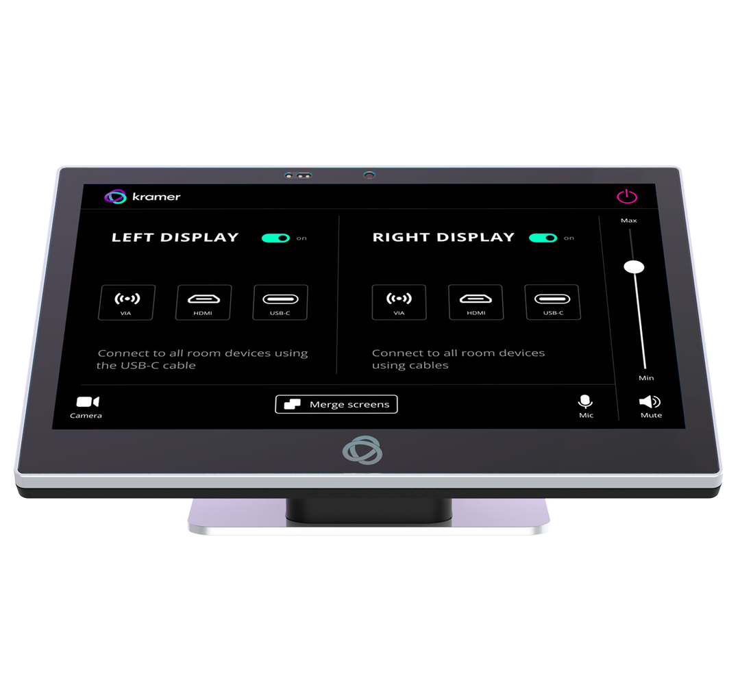 KT−2010 is a new powerful, 10−inch, IPS, multi−touch, touch panel with 1920x1200 resolution. Elegantly designed for decorative room integration, this portable touch panel can be deployed either on a tabletop / wall. KT−2010, with the latest Android 13, supports wired PoE (Power over Ethernet) and advanced Wi−Fi connectivity options. The touch panel has a built−in speaker and camera and comes either with a tabletop or a wall mount. The touch panel is easy to assemble, using elegant wiring, secured mounting, reliable operation and flexible deployment. KT−2010 is a touch panel that is ideal for any 24/7 Kramer−supported commercial AV or control application and features a user−friendly, fully customizable graphical user interface configured by Kramer software.