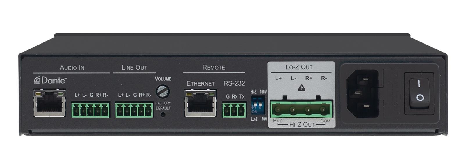• Adaptable to Any AV Installation - Switch between Lo-Z and Hi-Z to accommodate any type of loudspeaker installation. Select 1 Channel of 120W into a 70V/100V line or 2 channels of 60W into 4Ω/8Ω.